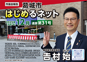 葛城市議会議員の吉村始(はじめ)です。「市政の主役は市民」がポリシーの「現役世代」の議会人です。図書館司書出身の現役出版人ならではの活動に努めてまいります。